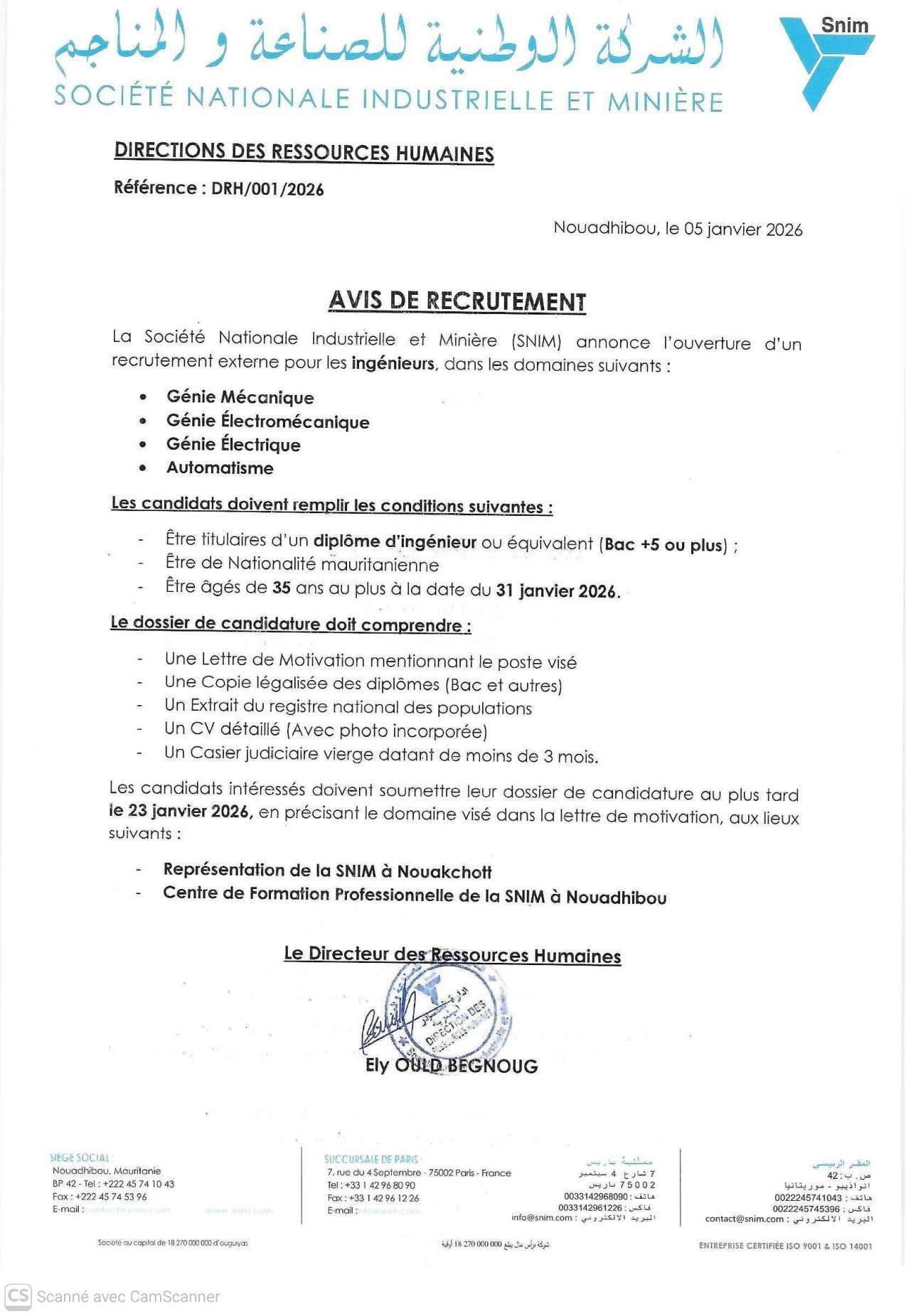 الشركة الوطنية للصناعة والمناجم "سنيم"تعلن عن اكتتاب مهندسين